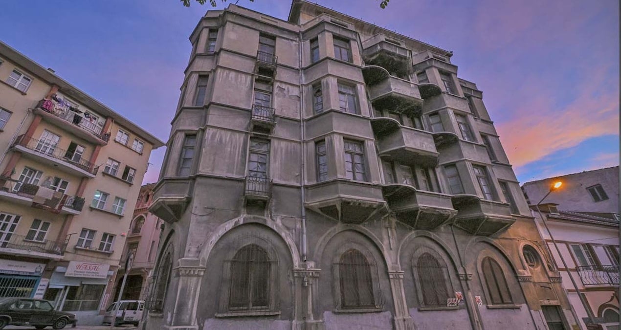 Işıklar Caddesi ile Alataş Sokağı’nın kesişiminde 200 metrekarelik bir alan üzerine Mimar Arif Hikmet Koyunoğlu tarafından 1922 yılında yapımı tamamlanan 4 katlı apartman, günümüzde kilitli, bakımsız ve terkedilmiş halde bulunuyor.