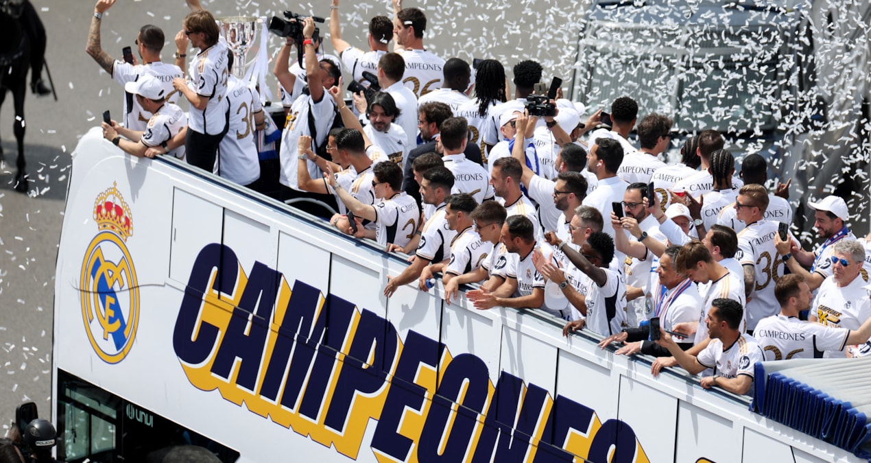 Sol Meydanı’nda yer alan Madrid özerk hükümet binası balkonunda yapılan konuşmalarda kaptan Nacho ve teknik direktör Ancelotti ile Luka Modric, Jude Bellingham, Antonio Rüdiger gibi bazı futbolcular 1 Haziran’da Wembley Stadı’nda Borussia Dortmund’a karşı oynanacak Şampiyonlar Ligi finalini kazanarak, taraftarlara kupayla dönme sözü verdi.