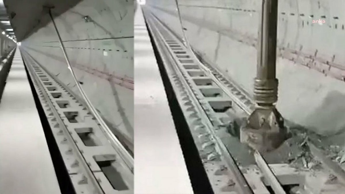 Yüzeyde çalışan sondaj matkabı tüneli delerek rayların üzerine indi, rayları da delerek tahrip etti.