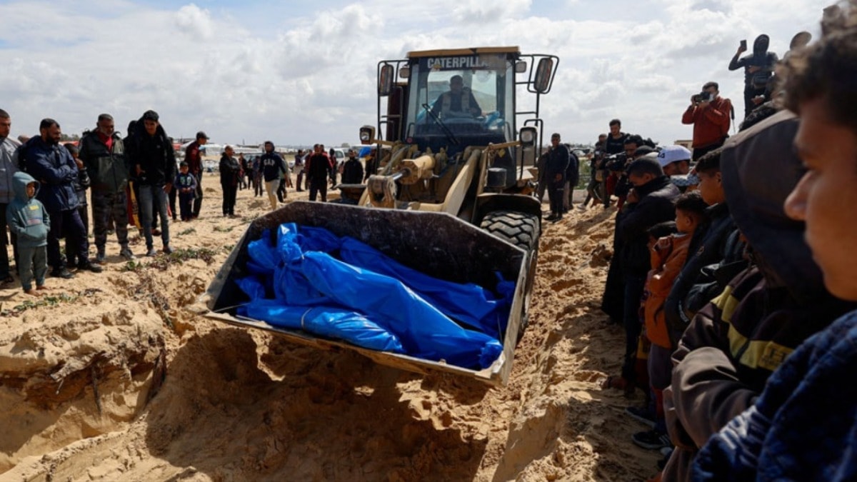 İsrail’in son dönemde saldırılarını yoğunlaştırdığı Refah’ta düzenlenen törenle yaşamını yitirenler toplu mezara gömüldü. Bir ekskavatör aracılığıyla mavi kılıfa sarılı vaziyetteki naaşlar yakınlarının gözyaşlarıyla izlediği törende son yolculuklarına uğurlandı.
