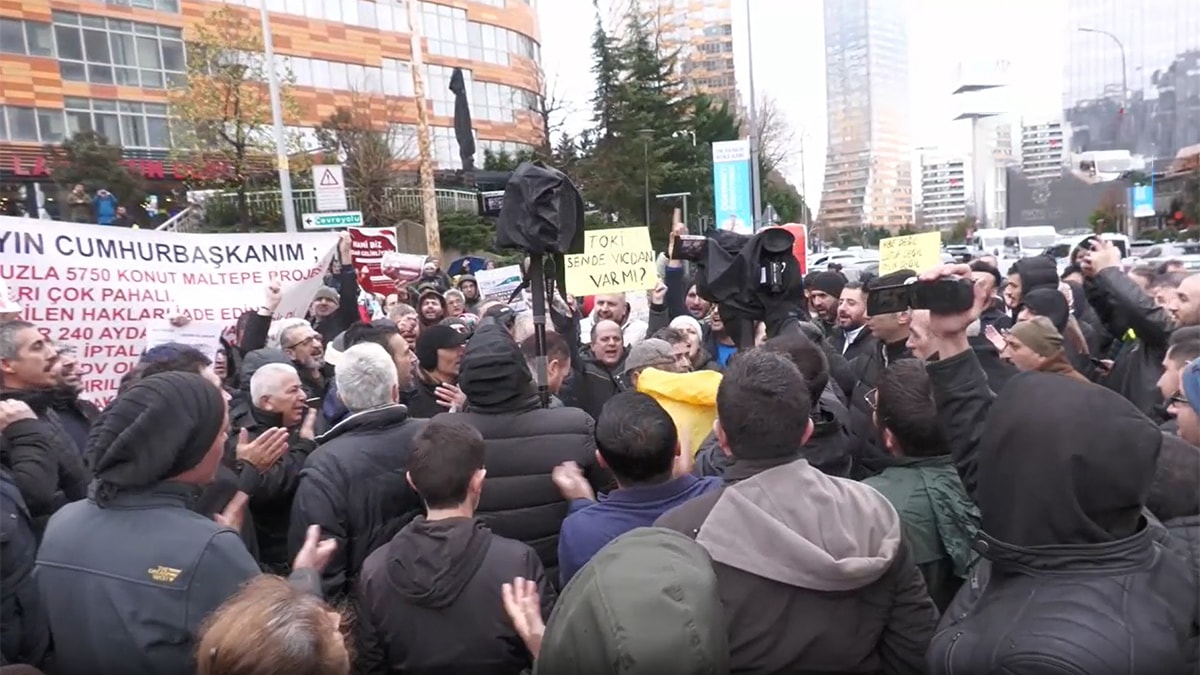 TOKİ’nin 2019 yılında başlattığı “100 Bin Alt Gelir Grubu Sosyal Konut Projesi” kapsamında hak sahibi olan yurttaşlar, evlerinin 4 yıldır teslim edilmemesi ve ödeme planlarında değişiklik yapılarak konut fiyatlarının ve aylık taksitlerin artırılması nedeniyle protestolarını sürdürüyor. Geçen hafta AKP İstanbul İl Başkanlığı önünde eylem yapan mağdurlar, bugün de İstanbul Çevre, Şehircilik ve İklim Değişikliği İl Müdürlüğü önünde bir araya geldi.