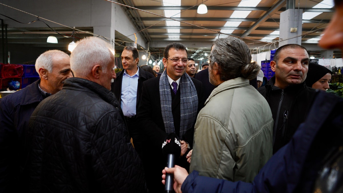 İstanbul Büyükşehir Belediye (İBB) Başkanı Ekrem İmamoğlu, CHP Bağcılar Belediye Başkan Adayı Cem Kılıç ile ilçedeki Yıldıztepe kapalı semt pazarını ziyaret etti.