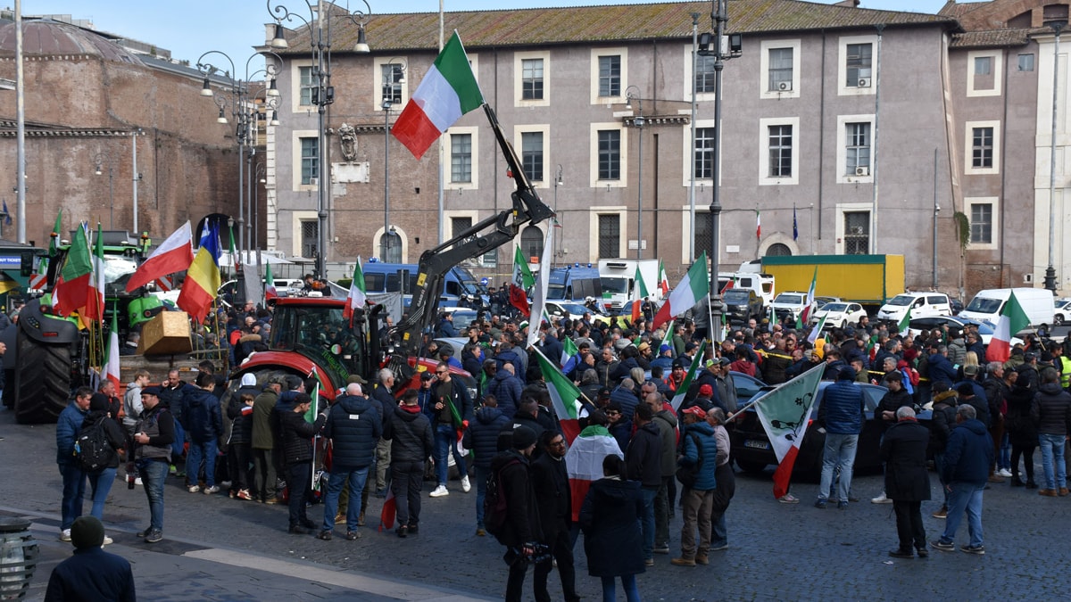 Ülkede haftalardır protestolarını sürdüren ve bu eylemlerini geçen hafta traktörleriyle geldikleri başkente taşıyan çiftçiler, bugün yine Roma’da protesto gerçekleştirdi.